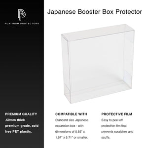 Platinum Protectors unveils its redesigned protectors for Pokemon Japanese Booster expansion boxes. Now UV and scratch-resistant, these protectors keep your TCG boxes pristine, preventing fading and damage. With flat surfaces and sleek, softline edges, they’re easy to assemble and stack flawlessly, outshining competitors’ curved, bulky closures. Crafted from ultra-clear, acid-free PET plastic, our open-end design ensures effortless insertion, superior durability, and a premium display.