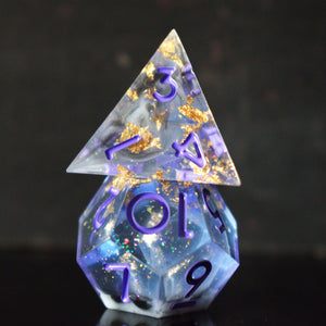 Hand-crafted from beginning to end, our sharp-edged resin dice feature gorgeously hand-painted numbers. These dice are ideal for any tabletop RPG game and are sure to impress at your upcoming session!