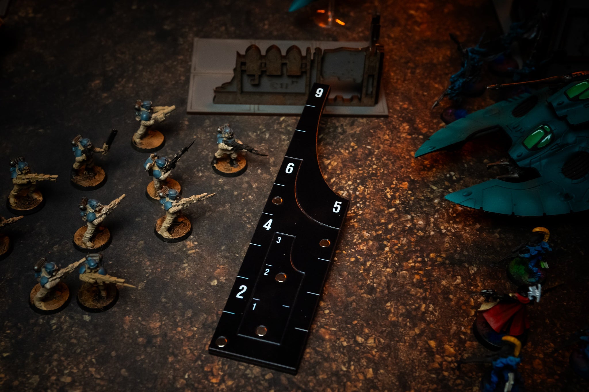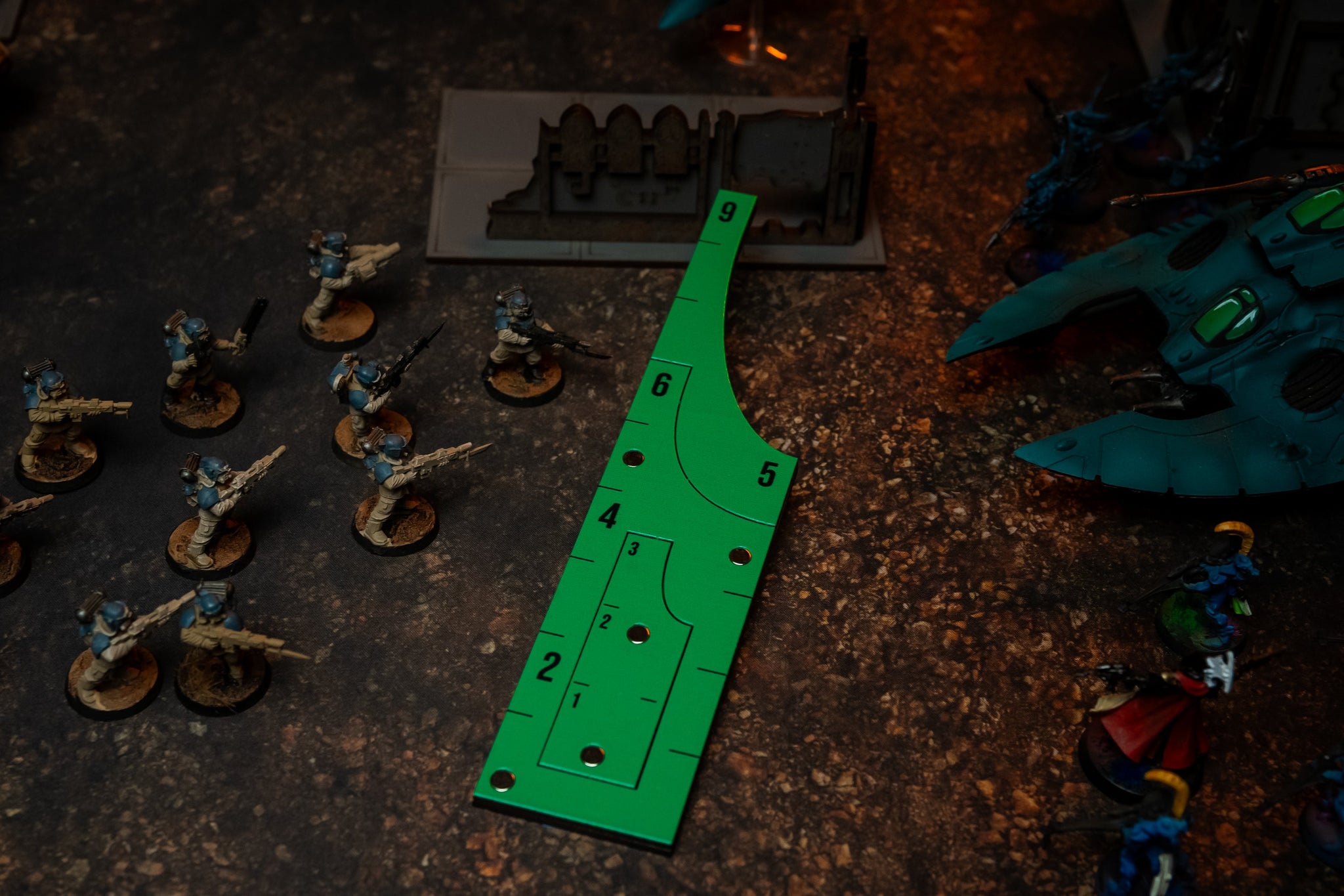 With the main tool quickly check 9 inch deep strikes. with convenient 5 inch, 4 inch, 2 inch, and .5 inch measurements as well. The middle tool quickly allows you to measure 6 inches and 4 inches for terrain placement or generic movement and finally the combat gauge allows you to track engagement, coherency, and heroic interventions.