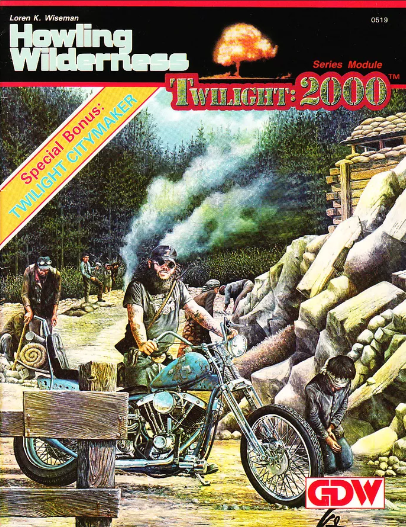 Howling Wilderness is a sourcebook of the United States of America for use with Twilight: 2000... It describes the events in America during the years leading up to the war. It describes the preparations for nuclear attack taken by the government, and why many of those preparations failed. It describes the attack upon the United States in November of 1997, and the aftermath of that attack. In addition, it carries the Twilight: 2000 future history through May of 2001, and summarizes conditions in the U.S. as of that date. It will also deal with the shift in weather patterns in late 2000/early 2001, and the effects this will have.Howling Wilderness contains the following:Discussions of the status of Civgov, Milgov, and New America, including current territories as of 2001, a summary of available military forces, and a brief history of each in the years from 1997 to 2001.Maps showing the location of each nuclear strike and details of the more important ones.A state-by-state rundown of local conditions, concentrating upon what effects the drought will have on each.This sourcebook also contains a special bonus: Twilight Citymaker. This is a collection of geomorphic map sections of various urban areas. We have provided a nice selection of geomorphic sections (over 100 different ones) for referees to photocopy. Using these geomorphs, referees can put together villages, towns, and fortified strongholds at a moment's notice, or make them up quickly and easily ahead of time.