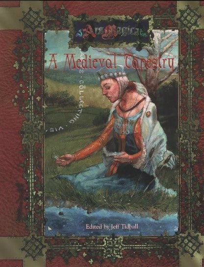 A Medieval Tapestry: Personalities of Mythic Europe is a 160-page sourcebook, featuring dozens of unique characters to be added to your Ars Magica saga, plus informational inserts and story ideas, as well as magus archetypes. A Medieval Tapestry serves several purposes: It illustrates character creation under the rules of Fourth Edition. The characters are practical examples and creative inspiration for players and storyguides making their own characters. It is a source of ready-made characters for use by players and storyguides alike. If a new player drops into your saga for one game, you can just grab a character from this book rather than generating one from scratch. Or, as a storyguide, you can turn to this book when you need an NPC on the fly. The characters and related inserts educate players about the setting of Mythic Europe and medieval history. Besides being interesting in their own right, the characters shed life on the typical and the unusual in medieval society. Informative inserts cover such topics as medieval law, hunting in the middle ages, the Knights Templar, heresy, and more.