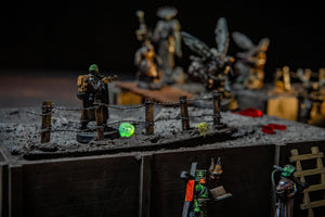 Fortify your front lines with this set of three barbed wire fence sections, perfect for Trench Crusade or any 28mm wargame. These barricades bring tension and immersion to the battlefield, creating cover, choke points, and just enough danger to make every move count.