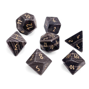 Luxurious Design. Carefully carved and polished, these polyhedral dice imbues a dark and mysterious color with gold number engravings.