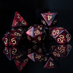 Our acrylic dice are carefully poured into individual molds and cured inside a vacuum chamber to insure no air bubbles are trapped inside the dice. After curing, each individual die is removed from the mold and numbers are painted by hand. These dice are perfect for any RPG and will sure to impress at your upcoming session!