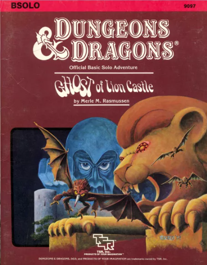 "A great cat sits upon the northern grasslands, my friend, waiting to pounce on adventurers just like you." As you part the tall grass with your sword, the words of the tavernkeeper echo in you head."He was the mightiest wizard we'd ever known, and that Lion Castle was his home." Your friends' voices mingle with the tavernkeeper's. "He's but a ghost now, haunting those halls, and waiting for an heir."The ground rises slightly. A strong wind rushes through the field. Suddenly, the grasses part, and Lion Castle rises majestically before you!"Magical riches await those who enter!" "Beware of man-beasts!" Voices flood your head again. Will you brave the haunted castle? Can you afford not to? It's all up to you in this D&D Solo Adventure.Ghost of Lion Castle is for one player only, but that one player makes all of the choices and enjoys all of the rewards. An entire castle and courtyard await your exploration. The adventure also includes a complete solo combat system.