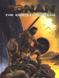 The Hyborian Age is named for the Hyborian kingdoms, the pre-eminent powers of the age, which are the most culturally and technologically advanced lands on Earth, their kings' thrones maintained through longbows, plate armour, and feudalism. These kingdoms make war against one another more often than against the real threats all around them, the wild Picts, raiding northmen, and avaricious Hyrkanian nomads, as well as the dread sorceries of Stygia to the south. Beyond Stygia and the plains of Shem lies the continent of Kush, black and unknown, a land of jungles and deserts; far to the east are more kingdoms, perhaps almost as a advanced as the Hyborian lands, but little more than legend: Vendhya and Khitai are the most prominent. The Conan RPG allows players to take the on the roles of characters from this rich and vivid world, whether Hyborians or any of the other myriad races who people the tales of Conan. As Howard's hero did, they can learn the skills of the thief, the mercenary soldier, the desert nomad and other roles on their way to greatness. By playing the Conan role-playing game, you can create a character who lives both in the mythical land of the Hyborian Age and in your own imagination and that of your friends. One player will take the role of the Games Master, controlling the people and creatures who dwell within the land, whilst the other players will be valiant heroes, outright rogues, or corrupt demon-worshippers according to their tastes! The Games Master sets the Hyborian Age before the other players, allowing them to explore everywhere from the unknown islands west of Zingara to the semi-legendary kingdoms beyond the deserts and steppes of eastern Shem, from the frozen lands of the Aesir and Vanir to the lush jungles of Kush.