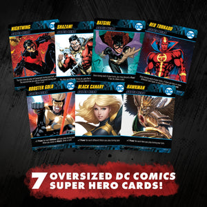 InDC Deck-Building Game:Heroes Unite, each player takes on the role of a Super Hero such asShazam! orHawkman. Your Super Hero has an ability that will guide your strategy throughout the game. Each player starts with his own basic 10-card deck and draws a hand of 5 cards each turn.Power is the currency you will use to buy new, stronger cards to add to your deck. A large, central stack of cards supplies a five-card “Line-Up” from which players make their purchases. Each player will always have five face-up cards to choose from each turn, so every turn there are new options and surprises. When a player has amassed enough Power, he or she may defeat the current Super-Villain. When a Super-Villain is defeated, a new one appears and makes an Attack against each player in the game! Players can defend themselves with Defense cards like Force Field, the Helmet of Fate, or several others. In the end, the player who has accumulated the most Victory Points from the cards in his or her deck wins the game. This is the follow-up to the 2012 hit DC Deck-Building Game. Play Heroes United on its own, or combine it with the original for an epic battle!