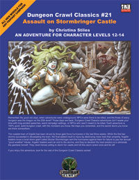 Nothing says "D&D adventure" like a giants series! DCC #21: Assault on Stormbringer Castle is the first in a two-part series that pits the heroes against a storm giant and her monstrous legions. Stozarri Stormbringer has forced local towns to pay a "good weather tax" for years. Now she ¹s raised the tax! When the local towns refused to pay, she sent three gale-force hurricanes in three weeks. The towns need heroes to eliminate this extortionist giantess -- but when the heroes raid her castle, they find much more than they expected!