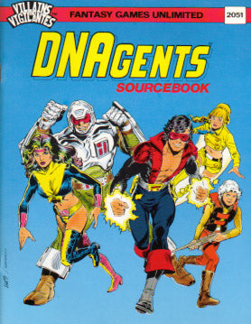 The unique and exciting superhero team translated into role-playing game terms. Complete and detailed character background of the DNAgents, their allies and their foes. Also including data and maps of Matrix Corporation and the major locales from Eclipse Comics. Two complete adventures are also included.