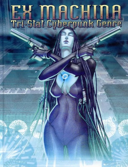 Covering a range from classic cyberpunk to post cyberpunk, Ex Machina is a comprehensive core rulebook for this intense role-playing genre. In addition to an insightful retrospect on the literary and cinematic genre, Ex Machina features four distinct cyberpunk settings by some of the most creative minds in the industry: Bruce Baugh, Christian Gossett and Brad Kayl, Michelle Lyons, and Rebecca R. Borgstrom.
