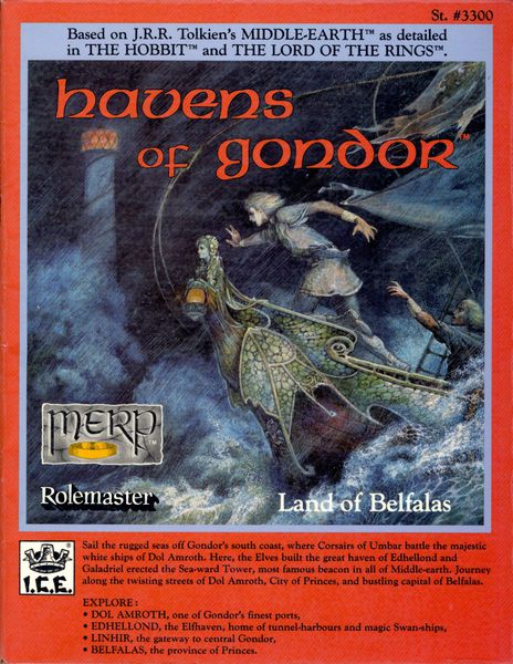 Havens of Gondor focuses on the great fief called Dor-en-Ernil, the "Land of the Prince." Comprising all the lands between the rivers Gilrain and Ringlo/Morthond and including the whole of the hilly peninsula called Belfalas, it is a strategic province blessed with fine ports and fair weather. It lies in the heart of southern Gondor and, aside from Lamedon, it is the westernmost of the Stone-land's wellsettled regions.