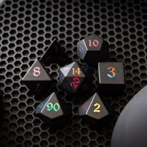 Embrace the shadows with our hanmade Inked Black Night Raised Obsidian Gemstone DND Dice Set! Each die in this captivating set is meticulously hand-carved from genuine black obsidian, a volcanic glass formed from cooled lava. The raised, inky black numbers seem to whisper secrets of ancient power and hidden knowledge.