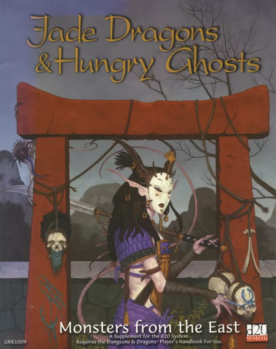Forest demons, heavenly dragons, shapeshifting foxes, and hungry ghosts thirsty for revenge -- all stalk forth from the legends of Asia! Surprise players with bell spirits, bat-ninjas, demonic oni, the Chinese Phoenix, and the legendary Monkey King! These all-new monsters thrive in every environment from bamboo forests to samurai castles, from raging oceans to mist-enshrouded mountains, and from the depths of Hell to the harmony of Heaven. Jade Dragons and Hungry Ghosts includes more than 50 fully-illustrated monsters from the legends of Japan, China, Burma, Vietnam, and Malaysia, brought to life by such renowned artists as rk post, Quinton Hoover, Michael Phillipi, and Tony DiTerlizzi . Authors include ex-Dragon editor and TSR designer Wolfgang Baur, Dragon Fist designer Chris Pramas, Greyhawk guru Erik Mona, and Forgotten Realms stalwart Steven E. Schend. The book also boasts a special introduction and featured monster by original Oriental Adventures designer David "Zeb" Cook! A must for any DM, Jade Dragons and Hungry Ghosts lets players tangle with the beasts from the east. Your Asian adventures start right here.