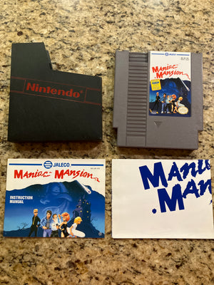Why is there a chainsaw in the kitchen? And a nuclear reactor in the basement? And disembodied tentacles hopping around? And why does that peculiar doctor keep going "Heh, heh, heh... "? Strange things have been going on for years up at Dr. Fred's old mansion, ever since that meteor landed just outside the house. But when a sweet young cheerleader named Sandy disappeared into the basement, boyfriend Dave knew it was time to take a look behind the good doctor's door. Your task is to help Dave choose a rescue team and guide them on the wildest, weirdest mission your NES system has ever seen. The storyline depends on the individual talents and quirks of the team members you select, and no matter how many times you play, the outcome is never quite the same. Sometimes it's puzzling, sometimes scary, sometimes downright funny, but it's always, always a challenge. So if you're looking for a comedy-adventure that makes you think as hard as you laugh, get into Maniac Mansion today. And then try, just try, to get out!