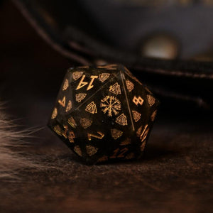 Each die is hand-carved from pure gemstone and polished in a proper tumbler. Designs are then engraved into each side and hand-painted. Gemstone dice are never guaranteed to have a perfectly balanced weight; however, each of our dice sets are always well-weighted and well-balanced.