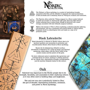 We chose labradorite due to its connection to Norse mythology as well as being commonly found in the Norwegian regions. In Norse mythology, Labradorite is associated with the Bifrost Bridge, a rainbow bridge that connected Earth to the realm of the gods, Asgard.