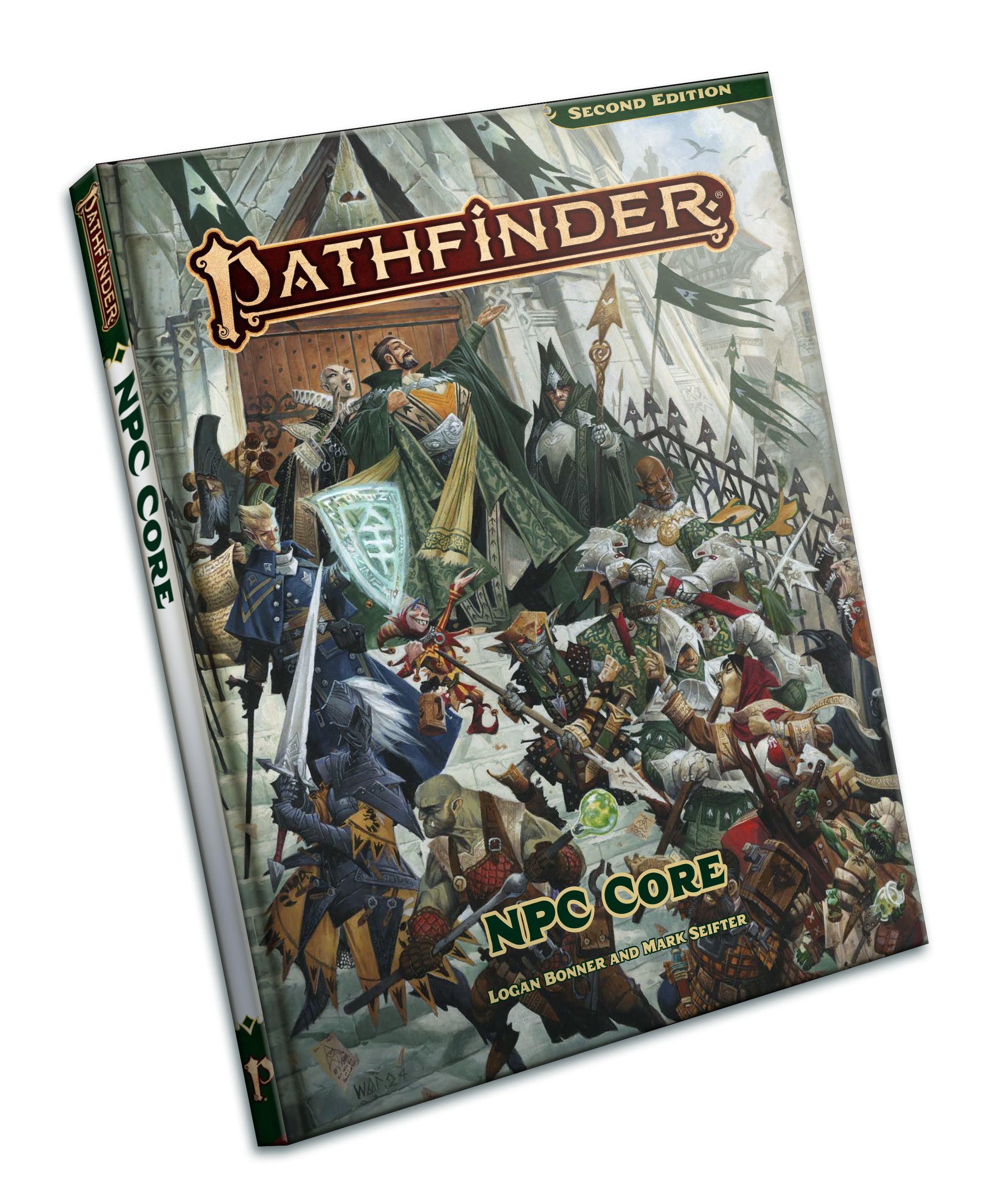 Devotees of the gods, cunning mercenaries, fun-loving performers, crafty engineers, devious villains and more all have roles in your game with the Pathfinder NPC Core! Over 250 stat blocks for NPCs let you drop all kinds of characters into your game, from servants and farmers to masters of magic and martial arts. The NPCs are crafted to be fun and easy to use, with sets of adjustments to quickly change their ancestry, level, and more. You'll also find a trove of NPCs specific to non-human ancestries, like a dwarf general, goblin get-gang, and kobold egg guardian. Each section of NPCs is themed, and includes lore, custom rules, and random tables to spice up your gameplay. Never find yourself making up statistics on the fly again—you can find everything you need in the Pathfinder NPC Core!
