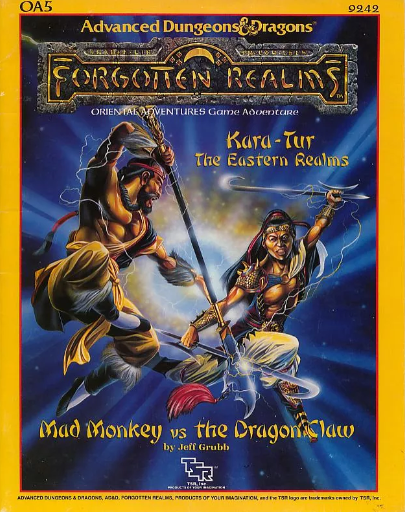Mad Monkey vs the Dragon Claw is a scenario for the ORIENTAL ADVENTURES supplement for the AD&D game. It is set in KARA-TUR, the oriental world in the Forgotten Realms. Mad Monkey vs the Dragon Claw is designed for five to eight characters of Levels 6-9.