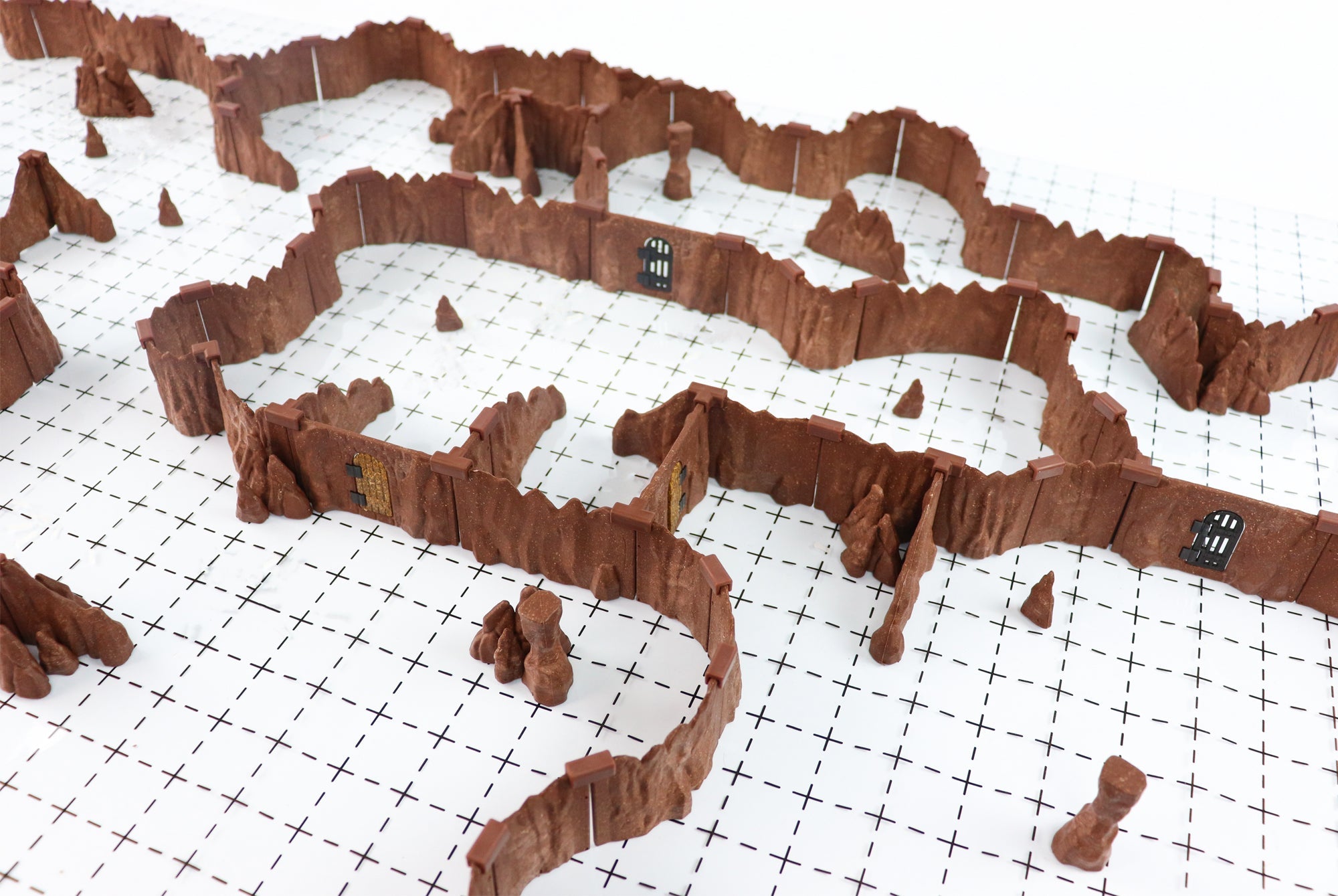 ***Miniatures and Grid Not IncludedCreate dungeons filled with dangerous tunnels, or ancient mines fraught with peril to challenge your players using our Modular Cavern sets! Our sets come with a variety of textured walls, both curved and straight, to make winding passageways and rooms. Add stalagmites, stone pillars to make your maps feel natural, or skeletal bones to add a sense of dread for your players.