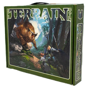 The compact Owlbear Terrain Set is great for the traveling GM looking to add a little variety to their outdoor scenes. Easily stackable and collapsable hills, in addition to various rocks, trees, stumps, and item scatter can add dynamic elements to any outdoor encounter.