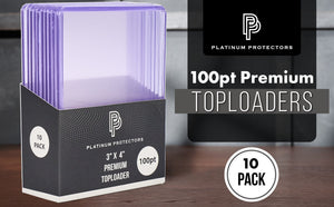 Don't trust your collection with the "standard" or "regular" quality toploaders that have flooded the market. Platinum Protectors premium quality 100pt toploaders are for the serious collector. The perfect way to keep your trading cards safe and secure. Made of durable premium hard plastic. Ultra-clear transparency with no imperfections.