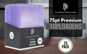Don't trust your collection with the "standard" or "regular" quality toploaders that have flooded the market. Platinum Protectors premium quality 75pt toploaders are for the serious collector. The perfect way to keep your trading cards safe and secure. Made of durable premium hard plastic. Ultra-clear transparency with no imperfections.
