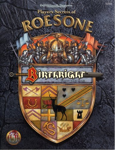 This BIRTHRIGHT domain sourcebook is designed for players who want to take the role of Baron Roesone, the warrior regent of the land. It may also be used by players playing nobles, servants of the Baron, or adventurers from Roesone.