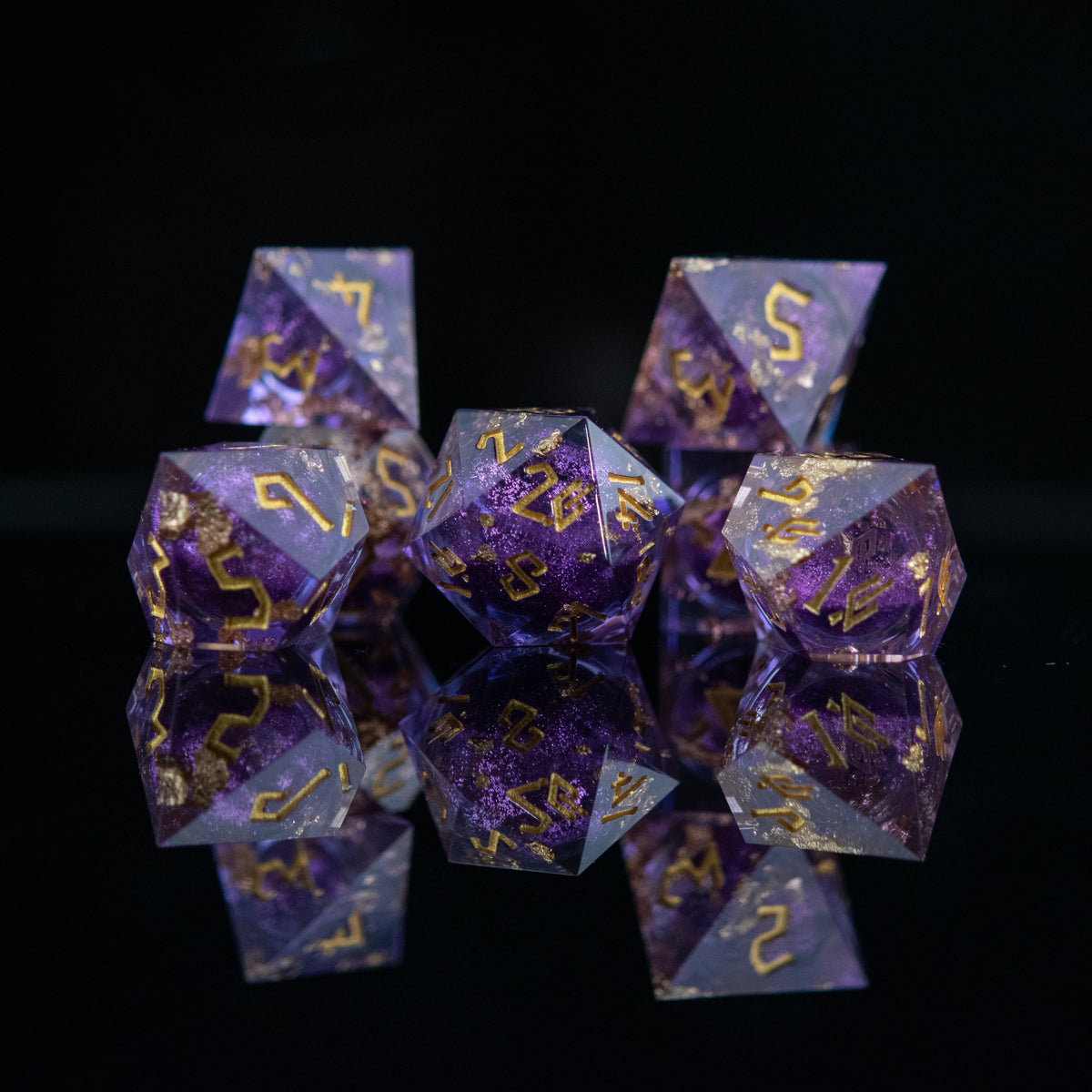 Hand-crafted from beginning to end, our sharp-edged resin dice feature gorgeously hand-painted numbers. These dice are ideal for any tabletop RPG game and are sure to impress at your upcoming session!