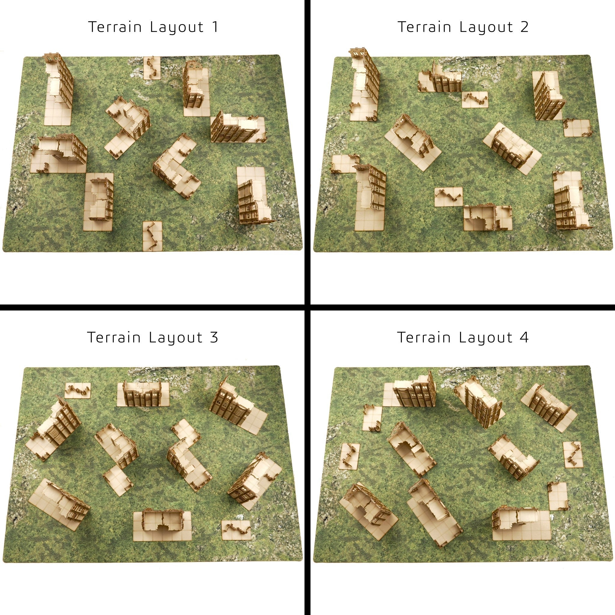 Improved Detailing: The terrain set now features even more intricate detailing, making it not only functional but also visually captivating. Whether it's crumbling ruins or high-tech fortifications, every piece is crafted to bring your tabletop battles to life.