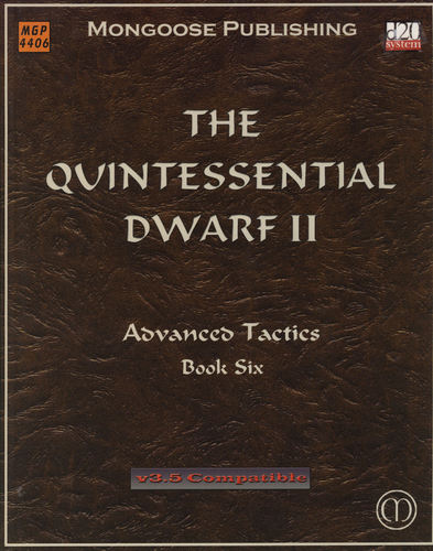 Strong, hardy and sometimes gruff, the dwarf is the mainstay of any adventuring group. As quick to appreciate architectural beauty as he is to charge screaming into battle, the dwarf is not as easy to judge as he may first seem. The Quintessential Dwarf II: Advanced Tactics aims to explain some of these contradictions as well as expand on the mythology behind these bearded warriors.