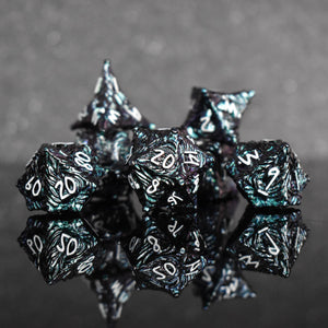 Our metal dice sets are all cast from zinc alloy metal to assure better balanced rolls. This set is perfect for any RPG and will be sure to impress at your upcoming session! Every set comes with its own metal dice tin for easy storage and a winning presentation.