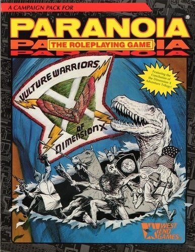 This dual duty adventure/campaign pack contains the WERDA (West End's Recommended Daycycle Allowance) of the following essential situations and plot twists.A fully developed, wholly realized in-depth treasury of facts and factoids about the High Programmers' most secret of all secrets - the Collapsacave! The brilliant, essential "Bogus GM Screen," featuring all the tables you need for Post-Crash Alpha, suitable for taping over your current screen! Hordes - count 'em, hordes - of stupendously sickening stories, suggestions, and scenarios for running your very own Vulture Warriors Of Dimension X campaign! Vulture Warriors Of Dimension X also contains the long-awaited answer to the question: How many clone replacements does it take to get to the center of a leaky nuclear reactor!